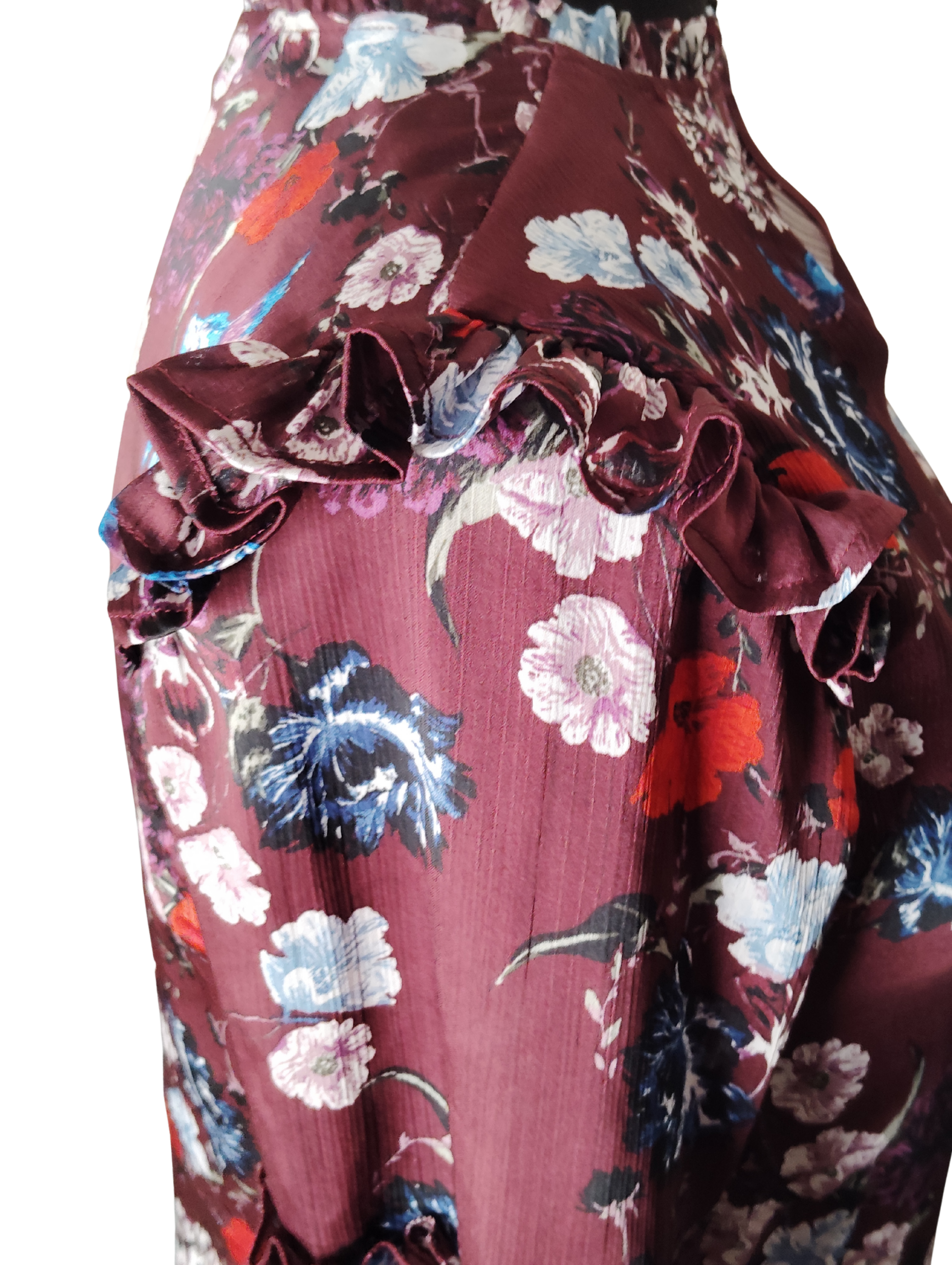 Maroon Short Sleeved Blouse with Ruffle Detailing - Size 12 - (measured bust is 38"/96.5cm)